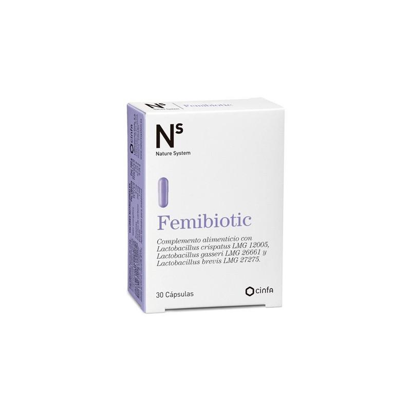 Ns Femibiotic es un complemento que contiene algunas de las cepas con mayor presencia en la microbiota vaginal, como el Lactobacillus crispatus y el Lactobacillus gasseri. Ayuda al mantenimiento de la flora vaginal: 1 cápsula diaria durante 30 días. En caso de uso conjunto con antibióticos, se recomienda tomar 2 cápsulas al día durante 10 o 15 días.